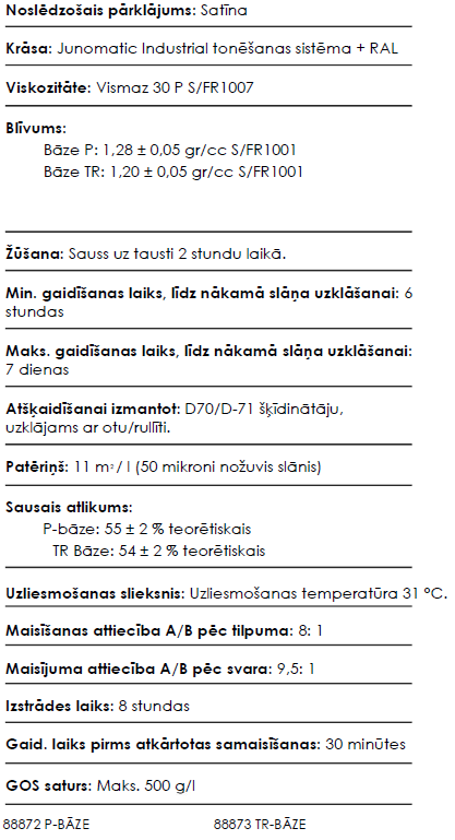 Atšķaidīšana: Atšķaidīt 0–5% pēc apjoma ar D-70 (kods 50.007) vai D-71 šķīdinātāju (kods 50.014).